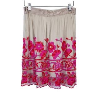Monoplaza Pink Red Floral Embroidered Mesh Overlay Floral A-line Skirt - Size S