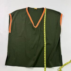 Monoplaza V Neck Drape Blouse Sleeveless Green Neon Orange Size Large