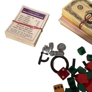 Monopoly Board Game 1961 Parker BRos Classic Game Board. As is condition Vintage. This gane is being sold “As is” it is missing some pieces. It is mostly complete but there are only 4 Game tokens and some cards and money may be missing. See photos for what the game has. The box is old and has rips on the sides. I have lowered the price to reflect the issues with this old game. There are no instru