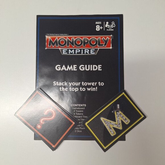 Replacement pieces and cards for the 2014 Monopoly Empire game. Includes chance cards, instructions, and rules. Perfect for completing your game set or replacing lost components.