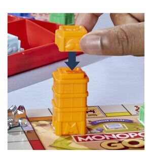 Monopoly GO! Board Game, Inspired by the Popular Mobile Board Game, 15 Mins., Family Games, Ages 8+ The Monopoly GO! game is what fans love about the popular mobile app game in a social tabletop version! In this thrilling family board game, the first player to build a landmark wins. To get started, each player chooses a mini gameboard with a favorite location, plus a matching-colored die. Then everyone rolls their die and moves that many spaces around their board—at the same time! If a player lands on a color space, they take a landmark block from the tray and add it to their board. Use Bank Heists, Shut Downs, and Mega Shut Downs to sabotage rivals. The first to stack 4 matching-colored landmark blocks on their board wins! Searching for fun family games for kids, teens, and adults? This strategy game is a great choice for anytime play, and it makes a cool gift for kids ages 8+ who love Monopoly board games.