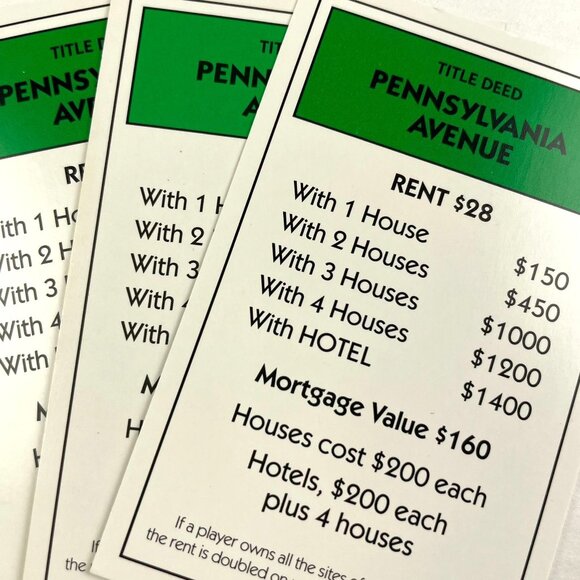 This is a Monopoly Here and Now Pennsylvania Ave Property Title Deed Card Replacement from 2008. Enjoy the classic game of Monopoly in modern style with this replacement card. Perfect for those who have lost or misplaced their original card, or who simply want to extend the life of their game. With this replacement card, you'll be able to continue your game for years to come.