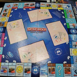 In this fast-paced version of the Monopoly game, players race around the board visiting cities and collecting passport stamps. The first player to fill their passport wins! The gameboard features favorite cities like Seattle, New York, and Denver. The game also includes 4 iconic tokens: the Statue of Liberty, a baseball glove, a trolley, and a cowboy hat. Every time someone adds another stamp to their passport, they get closer to winning!