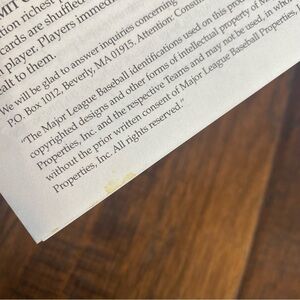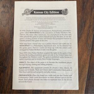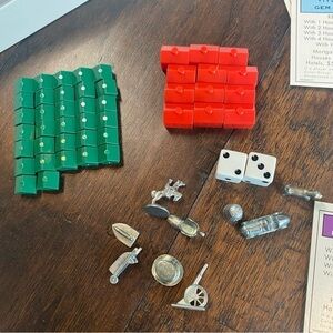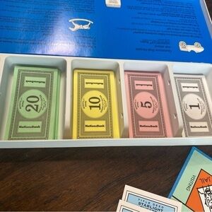 This game is in brand new condition. All of the cards, money, houses, hotels, instruction manual are complete. The cards and money are in new and undamaged condition. No corner bends or creases. One game token is missing. The outside of the box has some storage surface damage. Nothing on the inside except one tiny spot on the instruction manual. See pictures.
