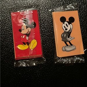 Complete set. All pieces in box. Excellent condition. All pieces are unopened in original plastic bags except the Mickey & Minnie cards. All cards are there in original plastic.