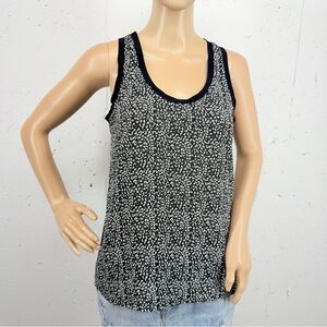 Monoprix Femme Women’s size 36 Small Black pint Lightweight Tank Top Blouse. There are some tiny runs not noticeable and material / car tag removed besides that in good preowned condition.