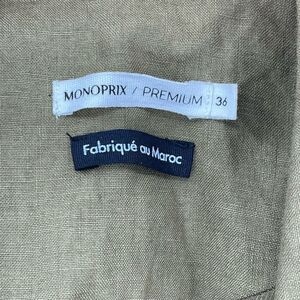 Monoprix Premium 100% Linen One Button Blazer Women FR 36 US Small Army Green