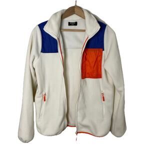Monoprix Sport Synchilla White/Orange/Blue Skiing Winter Preppy France Women Sm