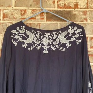 Monoreno Black Oversized Embroidered Boho Handkerchief Sleeve Blouse
