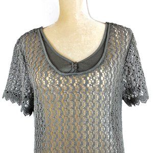 Monoreno Crochet Lace Open Knit Olive Green Dress