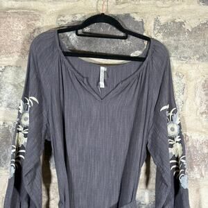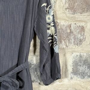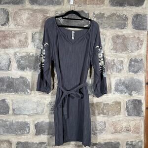 Monoreno Dress Woman's Large Gray Embroidered Floral Boho Coastal Cruise Belted
