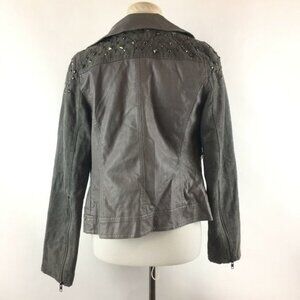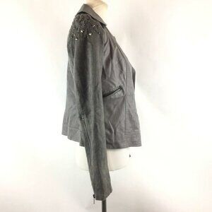 Monoreno Womens Moto Jacket Size Small Gray Zip Up Embellished Front Pockets