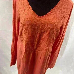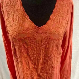 Monoreno Sleeve TUNIC TOP Boho Prairie Large Crochet Flowey Bohemian Peach