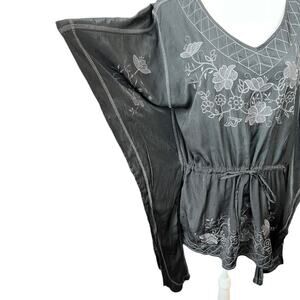 Beautiful black floral embroidered swimsuit coverup. Pull string to cinch waist. Flowy sleeves, perfect for a chic resort wear on your vacation poolside. Excellent condition.