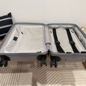 Outfitted with a high-quality polycarbonate shell, the Carry-On Pro is dent-resistant, impact-friendly and virtually unbreakable. It features an ultra-sturdy telescopic handle, TSA-Accepted lock, whisper-quiet wheels, vegan leather details, and all-premium materials. When you’re not travelling, the Carry-On Pro suitcase nests inside any of our Check-In sizes for easy storage.