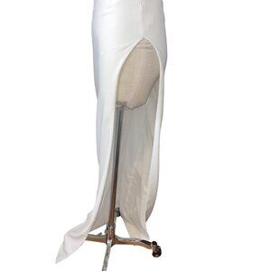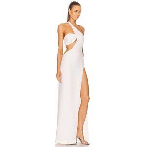 Mônot's eye-catching style is showcased with this bright white asymmetric gown. Defined by its contemporary cut-out detailing, the floor-length design features a side slit for added flair.