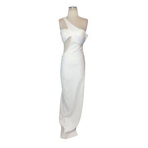 Monot Cut Out One Shoulder Maxi Dress in White New Womens Long Maxi Gown