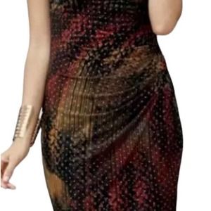 Monroe & Main Bead Draped Cowl Sheath Mixed Print Office Casual Date Night Dress