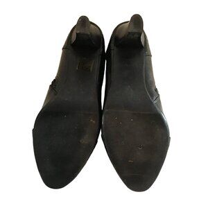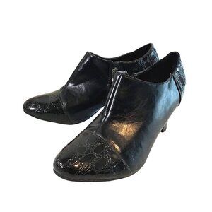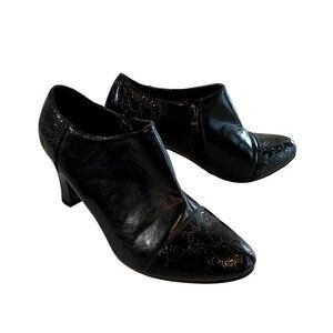 Monroe & Main Black Embossed Leather Heeled Ankle Boots With Side Zippers Womens