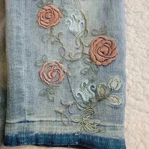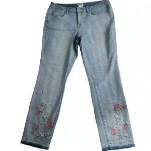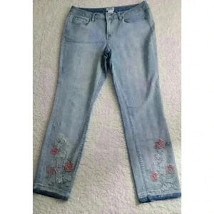 Monroe & Main Jeans Womens 12 Embroidered Floral Boho Raw Hem