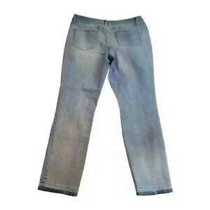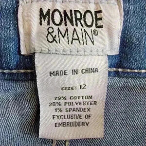 Elevate your style with these gorgeous Monroe & Main jeans. The floral bohemian design is perfect for any season and features a raw hem for a unique touch. The 5-pocket design provides ample storage space, while the zip and button closure ensures a secure fit. The jeans are made of a comfortable blend of spandex and cotton denim, which makes them easy to care for and perfect for any occasion. The mid-rise jeans have a waist size of 34 inches and an inseam of 23 inches, making them a great fit for women size 12. The jeans are machine washable and come in a beautiful blue color.