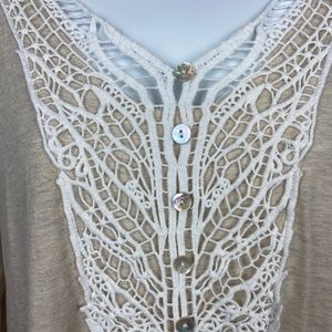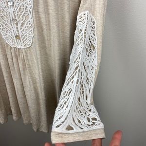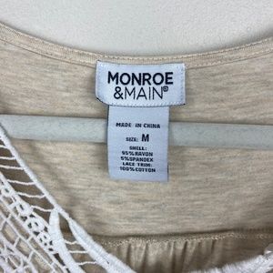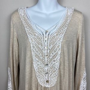 Monroe & Main Lace Trim Long Sleeve V-Neck Top - Size Medium