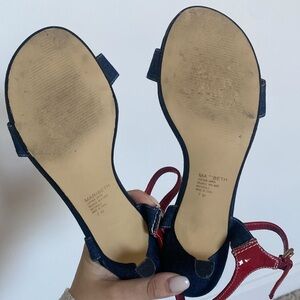 In good condition. Has a little bit of damage on the side of the straps. Cute little heel. Lightly worn. Size 7 M.