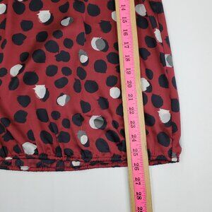 Monroe & Main Red Polka Dot Print Peasant Blouse L Sheer 3/4 Balloon Sleeve Top
