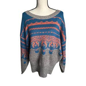 Monroe & Main Vickie Sweater Aztec Fair Isle Pullover Teal Orange Gray Size XL