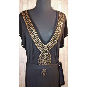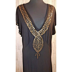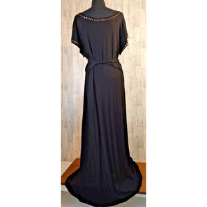 Monroe & Main Woman Maxi Black Jersey Flowy Dress Size 1X Brass Metallic Accents