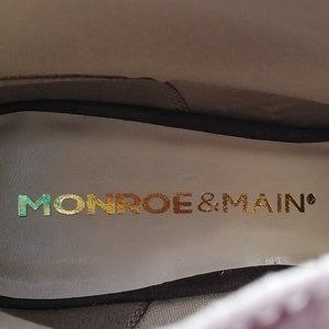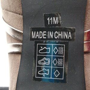Monroe & Main Womens Heels Brown Front Slit Peep Toe Back Zip Gold Straps 11 NEW