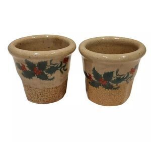Set of Two Monroe Salt Works Pottery 2.5" | Holly Holiday Toothpick Holder or Votive Mini Crocs | Speckled Clay Pottery | Handmade | Excellent Used Condition | No chips or cracks | Please refer to the photos for the condition