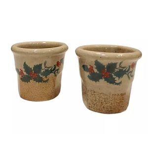 Monroe Pottery 2.5" Salt Works Maine Holly Holiday Toothpick Holder Votive Set 2