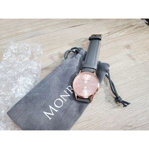 Monroe Rose Gold Wrist Watch Solérose - Charcoal Leather New