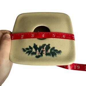 Monroe Salt Works Flower Frog Shallow Square Vase Holly Berries & Leaves Glazed