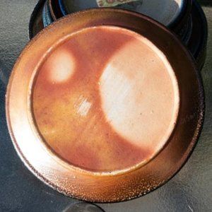 In excellent vintage condition, one Monroe Salt Works Grapes, Cherries, Peachers and Plums Large Dinner Plate Number 2, size 11". The salt design on this plate is more marbled on the perifery. There is no brand on the plate, it could be a test plate.