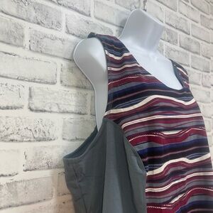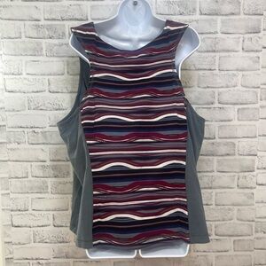 Multicolored center with gray sides, sleeveless, built in unpadded bra,stretch, colors may vary due to lighting, NWT, 3X