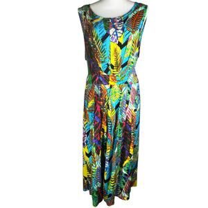 Monroe and Main Tropical Leaf Print Fit and Flare Midi Sundress Size 1X NWT