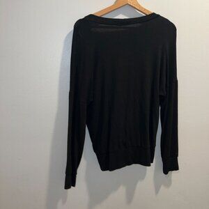 Monrow Black Drape Front Long Sleeve Top Size M Modal Blend Womens Sweater