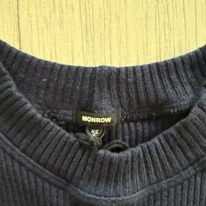 This exquisite sleeveless mini dress by Monrow is designed for cocktail occasions, featuring a chic sheath silhouette. The blue fabric is adorned with intricate white embellishments, creating a striking contrast that enhances the crew neck design. Its structured form ensures a flattering fit, making it a timeless choice for a night out.