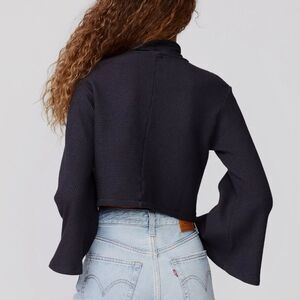 Simple but never boring. The Brushed Rib Mock Neck Top is made with flared sleeves, mock neckline, and cropped fit.