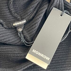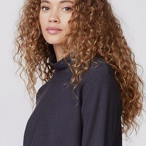 Monrow Brushed Rib Mock Neck Top Faded Black Size Large New