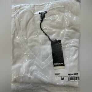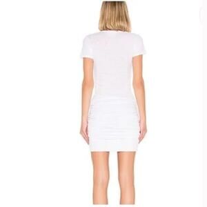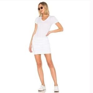 Monrow Cap Sleeve V Neck Dress Shirred Front Minimalist Casual Medium White