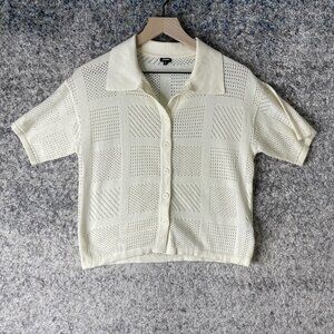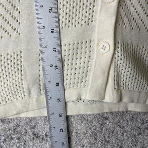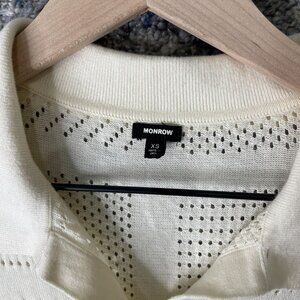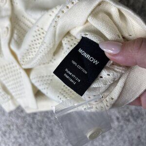 Monrow Cardigan Womens XS Ivory Pointelle Open Knit Button Front Short Sleeve