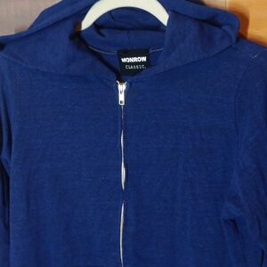 Monrow Classic hoodie jacket. Size M and in excellent condition. Gorgeous deep blue hoodie with kangaroo pocket and front zip. Comfortable and stylish hoodie for everyday wear.