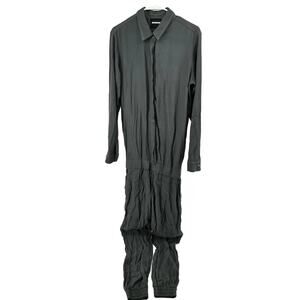Monrow Crepe Long Sleeve Jumpsuit Collared Button Up Elastic Waist Gray XS