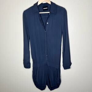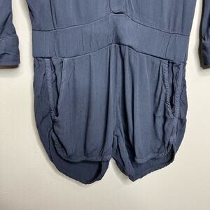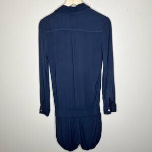 Monrow Crepe Long Sleeve Romper XS Blue Half Button Rayon Minimalist Relaxed Fit