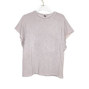 Monrow Gray Short Cutoff Sleeve Crewneck Top Raw Edge Size M