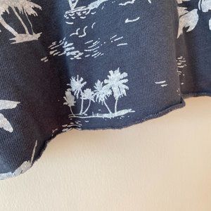 Monrow Hawaiian Print Crop Cutoff Sweatshirt Womens XS Blue Short Sleeve