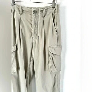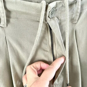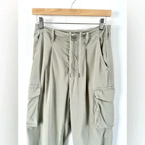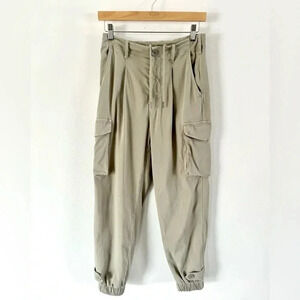 Monrow High-Rise Utility Pants Khaki Pleated Ankle Cargo Joggers Size XS